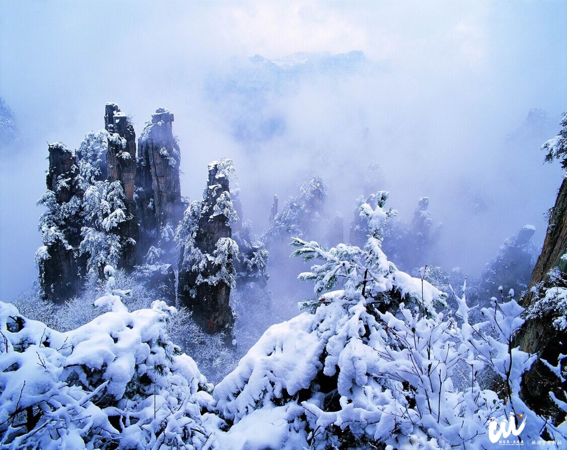張家界核心景區(qū)武陵源迎來首場冬雪(組圖)2015/12/0712月5日,湖南張家界核心景區(qū)武陵源迎來首場冬雪,連綿峰巒銀裝素裹。