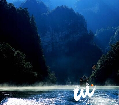 張家界寶峰湖:船在畫中游 妙手繪丹青(圖)2015/12/09藍天下的張家界寶峰湖風景區(qū),薄霧在湖面飄繞,船行其中,宛如一幅水墨丹青畫卷 。