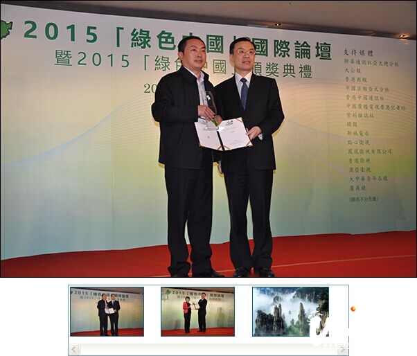 張家界武陵源區(qū)榮獲「2015綠色中國城市獎」2015/12/182015綠色中國國際論壇暨綠色中國環(huán)保成就獎頒獎典禮于12月上旬在香港隆重舉行,湖南三單位因其在綠色環(huán)保領(lǐng)域取得的成就獲主辦方肯定,在香江刮起一股綠色旋風。