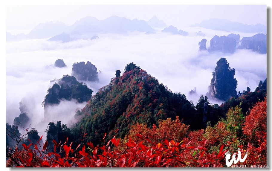 張家界武陵源晚秋美景嫵媚醉人2015/11/13“秋日張家界,風景勝畫卷。” 11月12日,一批韓國游客在世界自然遺產地武陵源黃石寨景區(qū)開心地合影留念。