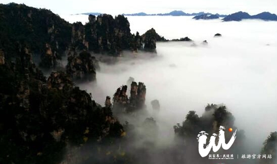 張家界·武陵源旅游官網(wǎng)11月24日訊 (通訊員吳勇兵 熊偉)11月20日,連日降雨過后,張家界武陵源核心景區(qū)出現(xiàn)云海景觀,成片的云霧纏繞著俊俏挺拔的山峰,漫過天際,場景十分壯觀。