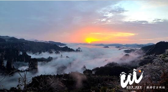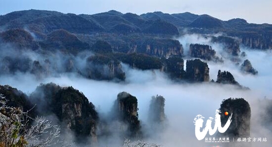 張家界·武陵源旅游官網(wǎng)11月26日訊 (特約記者 吳勇兵) 11月25日,久雨后的張家界武陵源天子山景區(qū)不僅出現(xiàn)了云海潮涌的壯觀景象,而且受低溫寒潮影響,山上植被處處綴滿了冰掛,讓中外游客驚嘆不已。