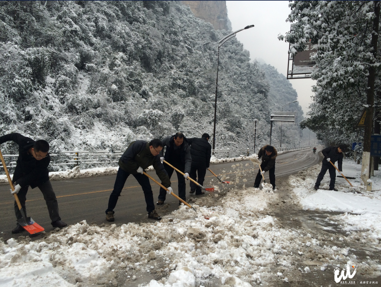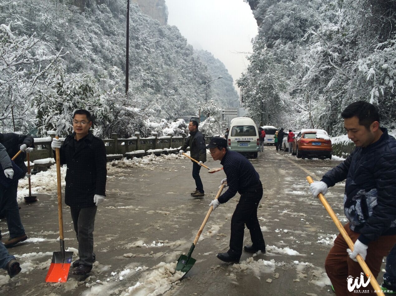 張家界·武陵源旅游官網(wǎng)1月22日訊 1月22日,武陵源區(qū)普降大雪,區(qū)旅游和外事僑務(wù)局所有干部職工全體出動(dòng),對張清公路百丈峽路段積雪進(jìn)行鏟除清掃,降低了因雪給游人出行帶來的不便,保障了公路暢通。