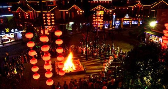 張家界·武陵源旅游官網(wǎng)5月14日訊(通訊員 吳勇兵)5月13日晚,張家界市武陵源區(qū)索溪河畔的溪布老街,大紅燈籠高掛,熊熊篝火燃起,游人歡快如歌。