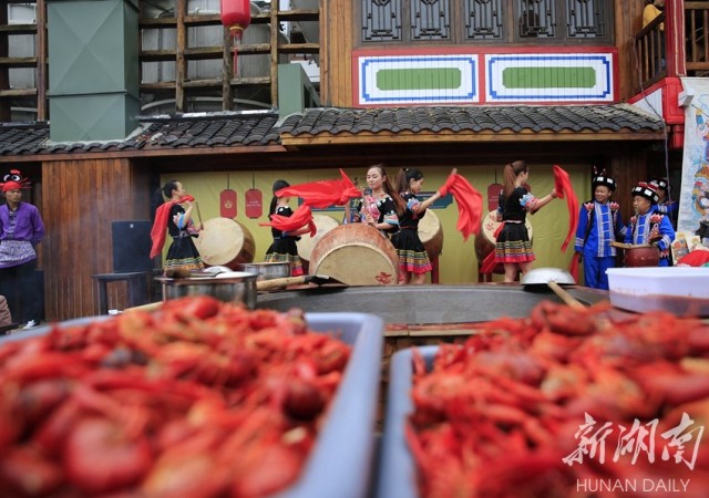 武陵源擺百人龍蝦宴 男子上演徒手炒蝦(圖)