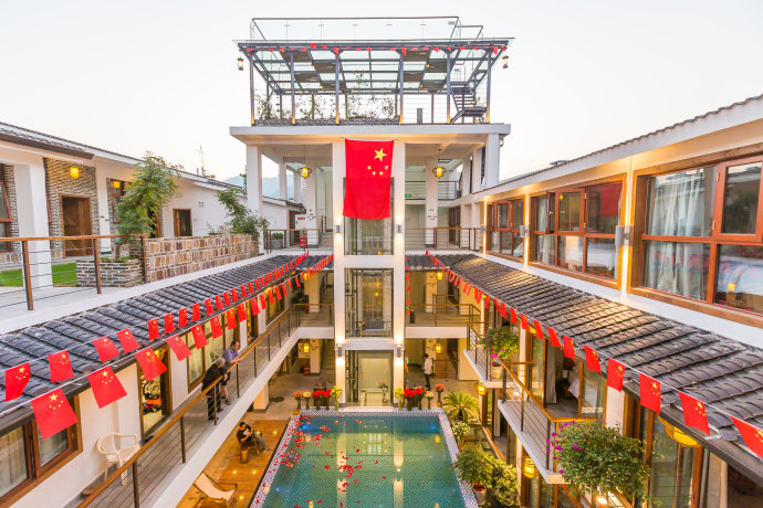 冒騷之二的是開業(yè),選擇“十一”國慶節(jié)開“騷”,騷主一家老小當(dāng)天在客棧內(nèi)升國旗、唱國歌,感謝共產(chǎn)黨好政策帶來的騷生活,感謝“城中村”改造換來的騷面貌。