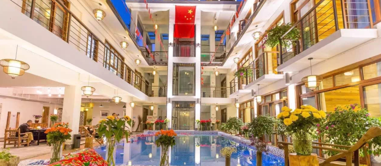 冒騷之三的是內(nèi)涵,花了1000萬元,除了50多間客房高端大氣上檔次,還內(nèi)置有空中全玻璃棧道、觀光電梯、露天游泳池,其建設(shè)規(guī)格和品質(zhì)在張家界客棧業(yè)算得上獨(dú)領(lǐng)風(fēng)“騷”。
