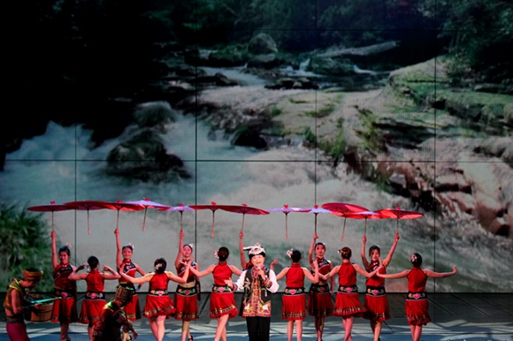 一幅迷人的民俗畫卷:《煙雨張家界》時長80分鐘,10個選段圍繞洛巴沖和阿依朵的愛情主線,展示了張家界地區(qū)歷史悠久的農(nóng)耕文化、巫儺文化、建筑文化、服飾文化、飲食文