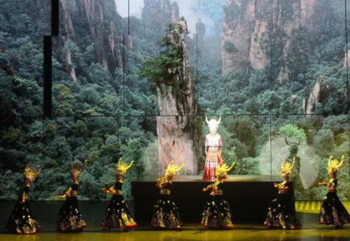該劇以張家界土家族、苗族最樸實的生活場景為素材,用獨特而巧妙的舞蹈手法進行藝術(shù)創(chuàng)作,融現(xiàn)代舞臺藝術(shù)、5.1高保真環(huán)繞音效、夢幻多屏矩陣、環(huán)幕投影、虛實互動表演于一體,配合美妙而震撼的配樂,帶給觀眾最美的視覺和聽覺享受。