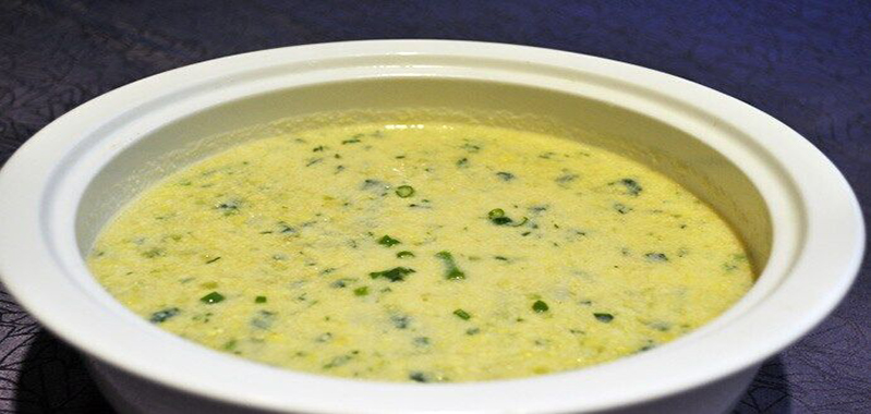 以黃豆磨醬(或舂粉),拌以小菜合煮(韭菜、南瓜葉、白菜、油菜等小菜均可),外觀一般,第一眼看上去似豆腐渣,其實(shí)由于其未過(guò)濾,粗細(xì)搭配且營(yíng)養(yǎng)豐富,味道獨(dú)特;(口味清淡)