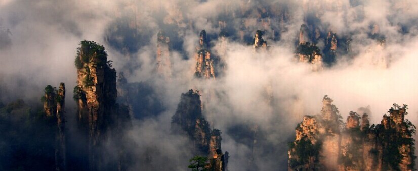 張家界國家森林公園面積 130 平方公里,是中國第一個國家森林公園。其處于峰林演化史的青年期,地貌奇特,石峰林立,形態(tài)各異,樹木茂盛 ;四周山地環(huán)抱,坡陡溝深,氣候暖濕,景點眾多。境內有兩座海拔超過 1000 米的寬厚而頂平坡陡的方山,一曰黃石寨,一曰鷂子寨。從地貌學上來看,方山尚處于峰林演化史中的青年期。由于巖塊既寬廣,巖質又堅硬,周圍山坡又都是由直立節(jié)理面構成的峭壁,遂形成高入云霄、頂端開闊平坦、氣勢雄壯的山寨,給人以寨高臺平的壯美之感。張家界國家森林公園可劃分為黃石寨、琵琶溪、金鞭溪、鷂子寨、畬刀溝、袁家界等六個小景區(qū)。