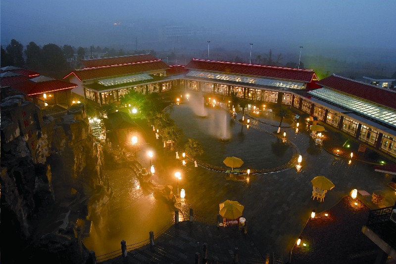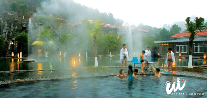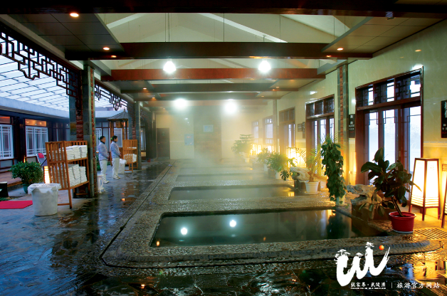 也是目前湘西惟一一家仿古式半露天江埡溫泉。建有20余種各具特色、各富功效的高標準露天江埡溫泉池和室內(nèi)江埡溫泉池。自然園林式布局,鵝卵石鋪成的青石板小路,假山瀑布,小橋流水,江埡溫泉池宛若明珠鑲嵌其中,一派恬淡寧靜的山野仙境,極具鄉(xiāng)土格調(diào)。它集溫泉、餐飲、客房、會務(wù)、健身、娛樂、桑拿、美容等經(jīng)營項目于一體,特別適宜于休閑、度假、娛樂、療養(yǎng)、會議、培訓和商務(wù)活動。