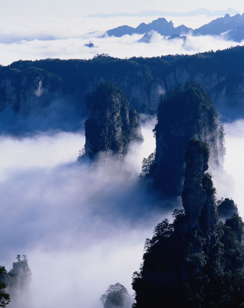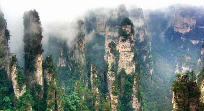 站在袁家界景區(qū)的觀景臺(tái)上,三千奇峰盡收眼底,雄險(xiǎn)秀野,神態(tài)各異。峽谷深處,千百根石峰石柱奇?zhèn)ネ涣?。峻峭之石,如英武將帥;嵯峨之峰,似勇猛壯士。有聲有色,若靜若動(dòng),形象逼真,呼之欲出。
