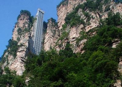 百龍?zhí)焯荩怪备卟?35米,運(yùn)行高度326米,由154米山體內(nèi)堅(jiān)井和172米貼山鋼結(jié)構(gòu)井架等組成,采用三臺(tái)雙層全暴露觀光電梯并列分體運(yùn)行,每臺(tái)次載客50人次,運(yùn)行速度3米/秒,三臺(tái)同時(shí)運(yùn)行每小時(shí)往返量達(dá)4000人次。百龍?zhí)焯莸男藿▽?shí)現(xiàn)“山上游,山下住”的目標(biāo),提供了交通保障,將袁家界天下第一橋、迷魂臺(tái)、天懸白練以及烏龍寨、楊家界等絕世美景從幕后推向了前臺(tái),并將天子山、袁家界、金鞭溪等精品旅游線路連為一體,解決了多年困擾景區(qū)的交通瓶頸問題。