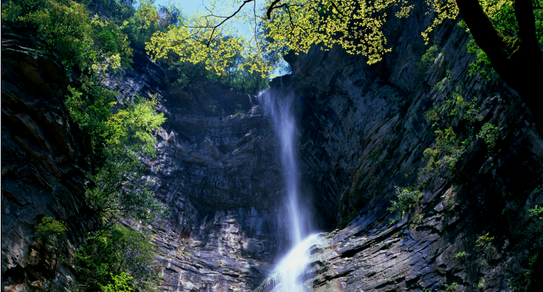 位于天子山鴛鴦溪景區(qū)內(nèi),猶如六月大雪般奇觀。