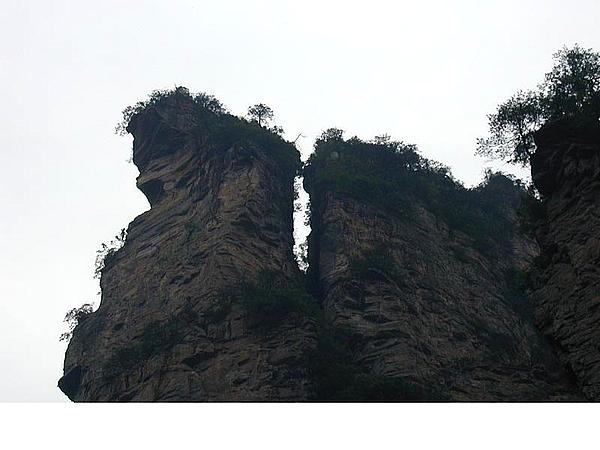前方一座山峰,底部連成一體,頂部分成兩半,好像被什么東西劈開一樣,巧合的是,旁邊還有一座小山峰,很像一把巨大的斧頭,人稱此景為“劈山救母”,傳說是沉香救母時,以為這便是華山,劈到一半時,有人告訴他,這不是華山。從地質(zhì)學的角度來看,主要是由于硬軟相間的巖層經(jīng)過重力崩塌和流水切割作用形成的,是大自然的鬼斧所劈。