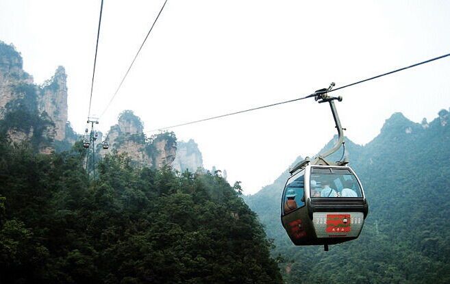 湖南武陵源索道有限公司成立于1995年12月7日,武陵源區(qū)人民政府和香港安達(dá)國(guó)際度假樂(lè)園(張家界)有限公司簽約,是由香港安達(dá)國(guó)際有限公司投資的外商獨(dú)資企業(yè)。1996年6月動(dòng)工興建天子山索道,1997年5月正式對(duì)外營(yíng)運(yùn)。天子山索道是單線(xiàn)循環(huán)式脫掛抱索器客運(yùn)索道,全部設(shè)備自?shī)W地利Doppelmayr公司進(jìn)口。設(shè)計(jì)水平線(xiàn)1960m,斜線(xiàn)長(zhǎng)2084m,兩端站高差692m。配單線(xiàn)自動(dòng)循環(huán)車(chē)廂41個(gè),每車(chē)廂載6人,運(yùn)速5m/s,每小時(shí)單向運(yùn)量900人。索道動(dòng)力電,采用雙電源;配備有應(yīng)急備用柴油機(jī),用于停電或發(fā)生設(shè)備事故時(shí)緊急疏散游客。2015年改造后“土豪金”天子山索道總線(xiàn)路長(zhǎng)2091米,結(jié)構(gòu)為單線(xiàn)循環(huán)脫掛式,共架設(shè)12個(gè)支架。同時(shí),全線(xiàn)設(shè)置了78個(gè)吊廂,運(yùn)行速度最高為6米/秒,在原有基礎(chǔ)上提高了33%;運(yùn)載能力由原來(lái)的900人/小時(shí)提高到2100人/小時(shí)。