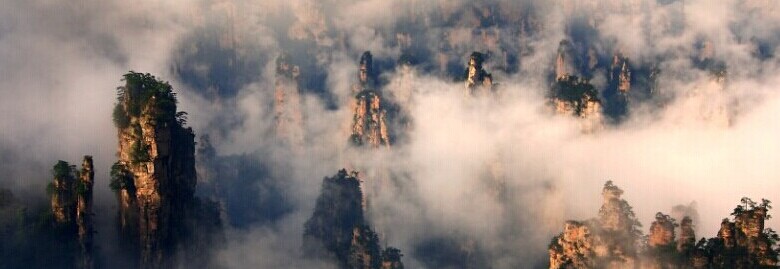 Zhangjiajie national Forest Park area of 130 square kilometers, is China's first national Forest Park. In the peak forest evolution history in the period of youth, strange landscape, Shifeng the proliferation, shapes, lush trees; surrounded by the mountains surrounding, steep slopes and deep gullies, warm and humid climate, the many attractions. There are two above 1000 meters thick and flat top and steep slope of the hill, said a Huangshi village, a village, a kite. From the point of view of geomorphology, Fangshan peaks in the history of evolution is still in the period of youth. Because the rock is wide, soft rock and hard, surrounding hillsides are composed of vertical joints of cliffs, gradually formed a high into the Yunxiao, top open flat, imposing and magnificent fortress, in order to give people a sense of sublime walled fortress flat. Zhangjiajie National Forest Park can be divided into the Huangshi Zhai, Pipa brook, Golden Whip Stream, Yaozi village, she trench knife, Yuan Jiajie, six small area.