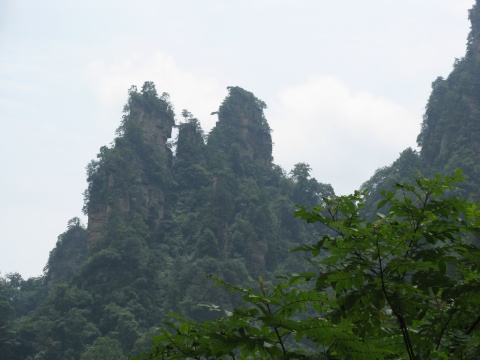 三姐妹峰位于十里畫廊峽谷最深處,是十里畫廊的精華景點之一。三根石峰并排矗立,活脫脫就是三個姐妹并排而立,左邊的是大姐,身上背著一個孩子,中間的是二姐,懷里抱著一個孩子,右邊的是小妹,剛剛結(jié)婚,肚子里懷著一個孩子。